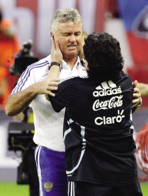 阿根廷昨天做客挑戰(zhàn)俄羅斯,所有的焦點(diǎn)都在兩隊(duì)主教練馬拉多納和希丁克身上,可惜荷蘭人再神奇也抵不上球王有一個(gè)神奇的女婿——憑借阿奎羅的兩傳一射,缺少梅西的阿根廷3比2逆轉(zhuǎn)戰(zhàn)勝了俄羅斯,為9月5日與巴西隊(duì)的世界杯預(yù)選賽找回了寶貴的信心。