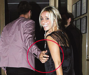 雷德克納普背對妻子伸出右手似乎想拉住露易絲的手臂,然而由于她正轉(zhuǎn)身面對鏡頭,于是雷德克納普的手掌卻不偏不倚地落在了胸部,而這一幕恰好被門口的一眾攝影師抓個正著。對于自己抓住了妻子的什么部位,小雷德克納普似乎毫無感覺,但面對鏡頭的露易絲則沒有這么好運,她只能尷尬地與攝影師們開笑說丈夫只是順手。