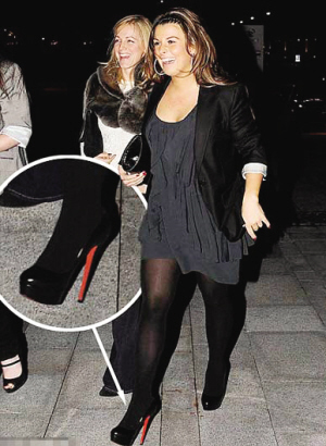 當晚,科琳選擇了最具收斂效果的黑色連衣裙,就連設計也是突出遮擋功能的散身款。擺脫了便便大腹之后總算又能名正言順穿回了酷愛的高跟鞋,這一次科琳選擇了頂級鞋履品牌克里斯提·魯布托的設計,值得一提的是,這雙6英寸的高跟鞋造價至少500英鎊。