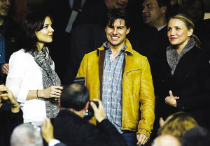 眾所周知,好萊塢大牌影星湯姆·克魯斯因為與貝克漢姆夫婦是密友,因此受到小貝的影響,阿湯哥對足球也有一定興趣。在昨天的歐冠比賽中,阿湯哥“叛變”了皇馬與米蘭,轉而來到現(xiàn)場為西甲勁旅塞維利亞吶喊助威。這一次,阿湯哥捧場的是塞維利亞主場與蘇超格拉斯哥流浪者的比賽。現(xiàn)場觀戰(zhàn)歐冠,阿湯哥的排場也很大,身邊伴隨了兩位大牌美女,一是他的嬌妻凱蒂·赫爾姆斯,另一位則是好萊塢著名美女影星、阿湯哥的好友卡梅隆·迪亞茲。