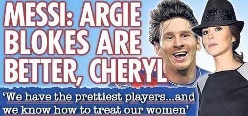 謝麗爾被認(rèn)為是英國最漂亮性感的女人,而丈夫阿什利-科爾卻因為婚外“偷吃”辜負(fù)了她。對此梅西坦言:“也許謝麗爾現(xiàn)在有點恨英格蘭球員。如果她愿意在世界杯上尋求另一支球隊去支持,那么非阿根廷莫屬。我們能踢出世界上最漂亮的足球,我們有世界上最英俊的球員,而且阿根廷的男人知道善待他們的女人!