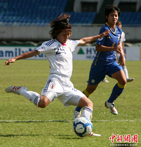 中新網(wǎng)成都5月22日電(記者劉忠俊 劉賢)5月22日,2010年女足亞洲杯賽進(jìn)入第四天,泰國(guó)女隊(duì)迎戰(zhàn)亞洲強(qiáng)隊(duì)日本隊(duì),比賽開始泰國(guó)隊(duì)從氣勢(shì)壓倒了日本隊(duì),直至第28分鐘左右日本隊(duì)才由22號(hào)前鋒高瀨愛(ài)實(shí)攻入第一個(gè)球。由于實(shí)力懸殊太大,最后泰國(guó)隊(duì)以0:4負(fù)于日本隊(duì)。目前,日本隊(duì)以2勝積6分,順利出線。