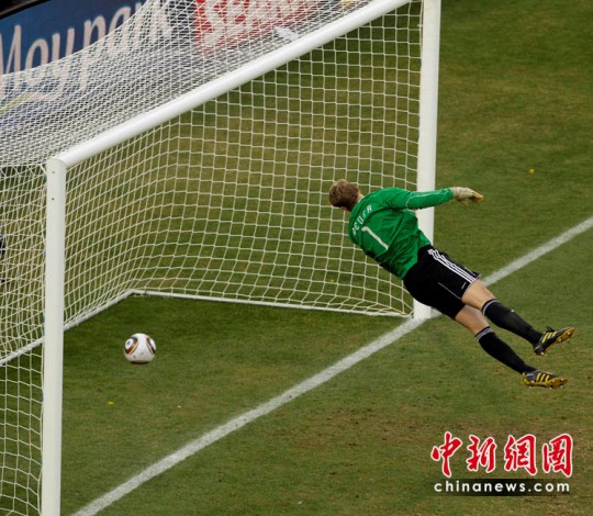 中新社布隆方丹6月27日電 南非世界杯1/8決賽上演英德大戰(zhàn),這場(chǎng)備受矚目的淘汰賽最終以德國(guó)隊(duì)4比1大勝收?qǐng)。英格蘭隊(duì)上半場(chǎng)一記扳平比分的進(jìn)球被判無(wú)效,主帥卡佩羅賽后怒斥“裁判們犯了最嚴(yán)重的一個(gè)錯(cuò)誤”,認(rèn)為蘭帕德的那個(gè)進(jìn)球被吹掉是比賽的重要轉(zhuǎn)折點(diǎn)。