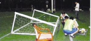 3日下午,位于武漢市漢口江灘三期的足球場上發(fā)生一起慘劇:一群足球迷正在踢球時,活動球門倒下砸在守門員頭上。該守門員被迅速送往醫(yī)院,但因傷勢過重搶救無效,不幸死亡。而據(jù)記者調查,同類球門砸死砸傷人的事件在全國也并非少數(shù),而多數(shù)悲劇的發(fā)生是因為球門質量不過關造成的。