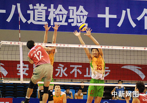 中新網(wǎng)漯河8月29日電(記者 關(guān)濤 師紅壘 通訊員 林波)8月28日,2009年全國男排錦標(biāo)賽(雙匯賽區(qū))在漯河市體育館展開了最后一天的八場決賽。引人注目的東道主河南隊與江蘇隊冠亞軍爭奪戰(zhàn)中,5局激烈較量之后,河南隊以2:3遺憾敗北,再次與冠軍失之交臂屈居亞軍,江蘇男排問鼎冠軍,