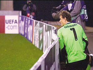 然而在這場比賽中,卻發(fā)生了令人瞠目結(jié)舌的一幕。原來就在這場生死戰(zhàn)的比賽進行過程中,斯圖加特40歲的主力門將、前德國頭號國門萊曼,突然離開其鎮(zhèn)守的球門,接著翻過球門后的廣告牌,然后迅速選擇一個在裝滿攝像與攝影設(shè)備的箱子邊蹲下身,這個可疑且神秘的動作持續(xù)了數(shù)十秒,萊曼才起身來到球門邊。巧合的是,萊曼剛回到球門前,對方就發(fā)動了一次進攻。負責(zé)轉(zhuǎn)播這場比賽的天空體育電視臺的攝像機捕捉到了這一細節(jié),但由于萊曼的動作被箱子擋住,因此無法確切拍攝到萊曼到底在干什么。不過賽后,德國著名的圖片報根據(jù)拍攝的照片和錄像回放來分析,萊曼十有八九是突然內(nèi)急,于是直接在廣告牌下借助箱子的遮擋方便了一下。