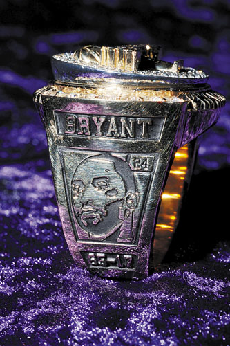 以前的總冠軍戒指都要分別刻上不同球員的名字和號(hào)碼,新版湖人總冠軍戒指又作出創(chuàng)新,增加了球員頭像。每一枚總冠軍戒指又會(huì)選出一顆鉆石刻上湖人的“L”字母,不同戒指的這些“L”所處鉆石的位置又會(huì)不同,必須通過高倍顯微鏡才能看到,因此每人的總冠軍戒指都是自己獨(dú)一無二的身份證明。