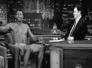 阿泰斯特日前在 《吉米·基梅爾現(xiàn)場秀》節(jié)目中亮相,當時他渾身上下只穿一條內(nèi)褲!皼Q定以這副造型上電視前,我考慮了好幾天!卑⑻┱f,“事先我并沒有告訴吉米,所以當我手拿長褲和襯衫出現(xiàn)在他面前時,著實把他嚇了一跳。那天我興致很高,我在節(jié)目開始前做了50個俯臥撐,渾身大汗淋漓,一上去就跟吉米擊掌擁抱。這段日子我一直在練肌肉,成效還不錯,只穿一條內(nèi)褲坐在攝像機前我一點也不會覺得難堪!
