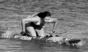 這純粹是“誤導(dǎo)”!幾乎每一分每一秒,海上交通事故、風(fēng)暴、迷霧、傷病、暴曬以及鯊魚,都可能要了這三個勇敢女人的命,因為她們的工具——沖浪板根本沒法保證安全。這是種相當(dāng)原始的方式,三個女人每次跪著或者趴在沖浪板上用手劃2小時,然后換人替班。每人每天劃4次,24小時日夜兼程,以保證每天100公里以上的進(jìn)度。沖浪板除了載人,就沒有放其他物資的空間了,所以她們只隨身帶一小包,里面只有3件東西:干衣服、照明燈和救生煙火。