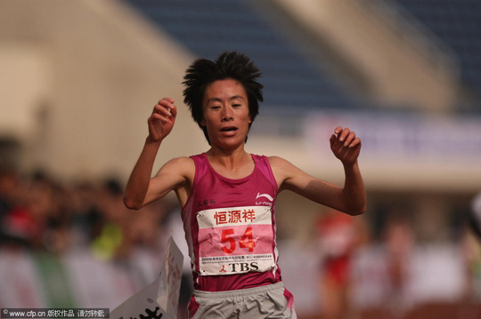 由于本次北京國際馬拉松賽同時也是全運(yùn)會馬拉松的比賽,所以第一位沖過終點(diǎn)線的中國選手、來自內(nèi)蒙古的小將韓剛就獲得了全運(yùn)會男子馬拉松的金牌,這也是內(nèi)蒙古的首枚全運(yùn)田徑金牌。