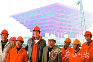 世博會(huì)中國(guó)館工地 劉翔與父親、教練一同“觸電”