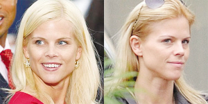 艾琳是一個標準的金發(fā)美女,來自瑞典的她曾經(jīng)當過模特,容貌可以用光彩照人來形容。可是最近的一張照片卻顯示,她似乎蒼老了很多。在這張照片中,艾琳露出了少有的笑容。即便如此,她仍然無法掩飾自己的黑眼圈和正在擴張的眼袋。很顯然,老虎伍茲的性丑聞給她造成了太多心理負擔,讓她心力憔悴,才給狗仔隊留下這樣一副“尊容”! ∧ 易