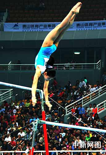 中新網(wǎng)濟(jì)南5月16日電(記者 胡洪林 王超)5月16日晚,山東省濟(jì)南奧體中心明星薈萃、人聲鼎沸,2009年全國(guó)體操錦標(biāo)賽進(jìn)行了前5個(gè)單項(xiàng)的決賽。在此經(jīng)過(guò)一番激烈的角逐,5枚金牌各得其所!耙唤恪背谭坪翢o(wú)懸念?yuàn)Z得跳馬冠軍,江鈺源一洗昨日比賽失誤之不幸,行云流水般出色完成整套高低杠動(dòng)作,喜笑顏開的捧走這一單項(xiàng)金牌。