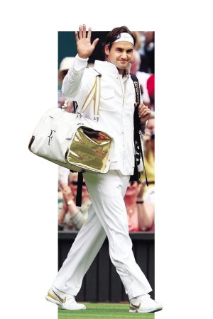 盡管在去年史詩般的決賽中輸給了納達爾,但當(dāng)他的這位宿敵黯然宣布因傷退出溫網(wǎng)后,剛剛完成全滿貫榮耀壯舉的費德勒無疑成了球迷們的惟一想念之人。于是,組委會“順應(yīng)民意”的安排費德勒頂替納達爾為安裝了頂棚的全新中心球場打響今年的揭幕戰(zhàn),而當(dāng)觀眾們目睹心中的偶像以吸引眼球的“時尚天王”裝扮向他們尊貴的揮手致意時,整個球場的熱度就再不曾降低過。