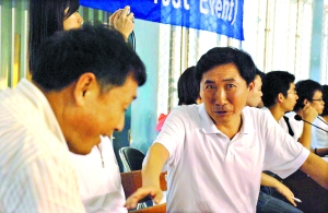 “你們采訪他(金潤東),他是主教練!苯痍撇χf,將自己的學生介紹給記者,對于老金來說是一件開心的事情。而金潤東在老金面前,依然像當年當學生一樣謹慎誠懇。由于一直在韓國國內效力、執(zhí)教,金潤東的英語和漢語都不靈光,憨厚的他首先想到的是讓隔壁的老師“救火”充當翻譯。