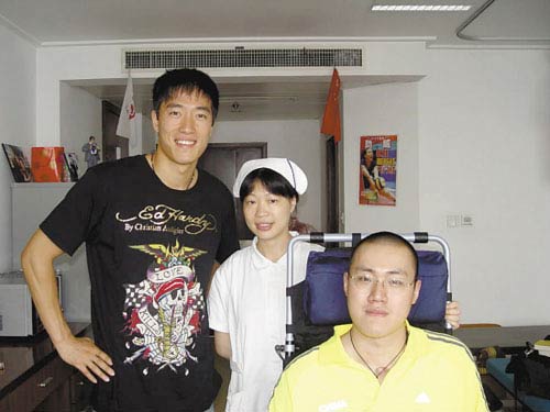 多方打聽了解到的情況是,本周四,劉翔穿著黑色T恤,頭戴鴨舌帽,悄悄進入醫(yī)院。因為同是上海運動員,又是老朋友,劉翔和湯淼聊得很開心。劉翔先仔細了解了湯淼的康復(fù)情況,鼓勵他積極配合醫(yī)生治療,以爭取好的結(jié)果。劉翔此行相當(dāng)?shù)驼{(diào),只在病房呆了十分鐘就匆匆離去,不過走之前,他還是滿足了湯淼的主治醫(yī)師、護士合影留念的要求。