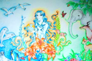排球美女趙蕊蕊扣球厲害,還畫得一手好畫。在一次北京海洋館舉辦的環(huán)保作品比賽中,她的一幅作品獲得二等獎。趙蕊蕊在博客里公布了這幅作品,她解釋說:“我想表達(dá)的是地球母親手捧地球,左邊是海洋世界,右邊是陸地世界,而她的頭頂是一片天空,因為有了這一切才構(gòu)成和諧統(tǒng)一的世界。”