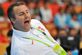 21日晚,中國(guó)男籃以76:66戰(zhàn)勝韓國(guó),比賽中主帥鄧華德在場(chǎng)邊激情執(zhí)教。