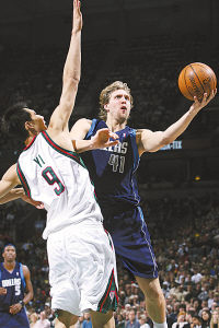 本場比賽的焦點是諾維茨基和易建聯(lián)之間的較量,兩人同為國際球員,而且身高都是2米13,不同的是諾維茨基如日中天,阿聯(lián)則是希望之星。在8月的德國邀請賽上,諾維茨基帶領(lǐng)德國隊兩次橫掃易建聯(lián)所在的中國隊。而本場比賽笑到最后的不再是“諾天王”。易建聯(lián)出場32分鐘,得到了9分和7個籃板球,在第四節(jié),易建聯(lián)還在諾維茨基的頭上奉獻了本場最精彩的一記大力扣籃。諾維茨基得到了20分和3個籃板球。