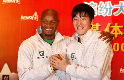劉翔,奧運(yùn)會(huì)和世錦賽110米欄雙料冠軍,世界紀(jì)錄保持者;阿薩法·鮑威爾,100米世界紀(jì)錄保持者,被稱為這個(gè)世界跑得最快的人。當(dāng)這世界兩大飛人相遇會(huì)擦出怎樣的火花呢?昨日,在安利舉行的媒體見面會(huì)上,一同亮相的劉翔與鮑威爾就侃侃而談,言語間彼此都惺惺相惜。