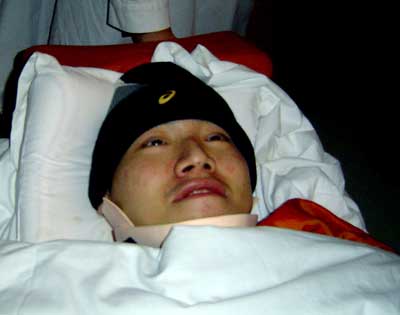 今年6月份在俄羅斯熱身活動(dòng)時(shí)頸椎受重創(chuàng)的湯淼此前一直在上海進(jìn)行治療,他前天晚上來(lái)到北京康復(fù)中心進(jìn)行治療。這也是湯淼重傷之后第一次在公眾面前亮相,目前他神志清醒,頭部能夠輕微搖動(dòng),但胸部以下仍無(wú)知覺(jué),雙手無(wú)法用力。