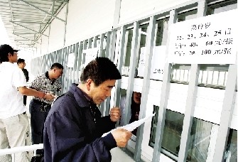 據(jù)售票窗口的工作人員說,從每天門票的限售情況看,每個(gè)窗口只有前10個(gè)人才有機(jī)會(huì)買到24日的決賽門票。工作人員表示,因?yàn)槊刻旄鲌?chǎng)次的門票都是限量發(fā)售,所以直到24日當(dāng)天還是有機(jī)會(huì)買到劉翔的比賽門票!暗呛筚I的門票座位就會(huì)靠后一些”。