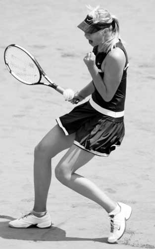 昨天,2008賽季法國(guó)網(wǎng)球公開(kāi)賽繼續(xù)第四個(gè)比賽日的爭(zhēng)奪。因?yàn)榇笥,頭號(hào)種子莎拉波娃的首輪比賽被推遲到了第四天方才登場(chǎng),結(jié)果身著最新靚麗戰(zhàn)袍,戴著18K金耳環(huán)閃亮首秀的俄羅斯美少女意外陷入苦戰(zhàn),最終憑借長(zhǎng)盤(pán)決勝,才以總比分6∶1/3∶6/8∶6艱難擊敗世界排名從沒(méi)有進(jìn)過(guò)前100位的同胞羅迪娜,晉級(jí)第二輪。