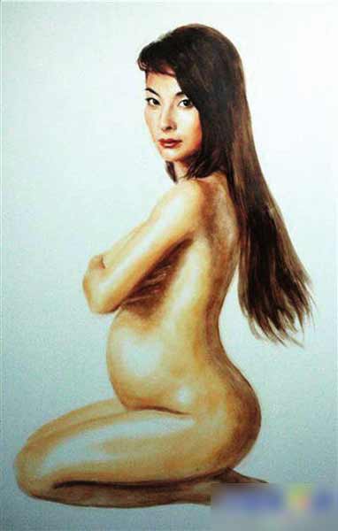 郭晶晶“懷孕”油畫(huà)。