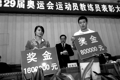 昨天,河北省政府表彰在北京奧運會上取得優(yōu)異成績的河北運動員及其教練。獲得跳水3米板單人項目和女子3米板雙人項目兩枚金牌的運動員郭晶晶(左)及其教練李芳、獲得射擊男子10米氣手槍金牌的運動員龐偉(右)及其教練員張勝閣被授予“河北省優(yōu)秀體育工作者”榮譽(yù)稱號,同時受到經(jīng)濟(jì)獎勵。