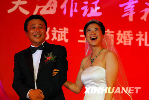9月27日,王楠與丈夫郭斌在婚禮現(xiàn)場(chǎng)。新華社發(fā)(初陽 攝)
