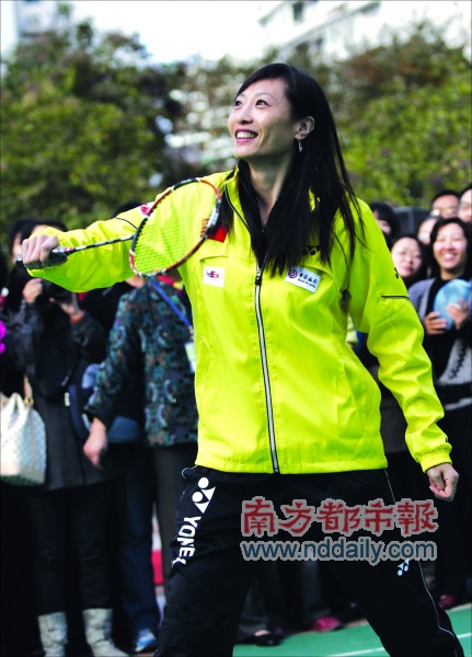 早上9時半,張寧與蔡赟、付海峰、韓晶娜便作為羽毛球世界冠軍代表出現(xiàn)在上海浦東社區(qū),參加“世界冠軍進社區(qū)”的羽毛球推廣活動,還與社區(qū)代表打起了雙打?qū)官;顒咏Y(jié)束不久,午后1時半,張寧已變換了身份,坐在中國隊女單組訓練場邊的教練席上正式開始了她第一天的工作。