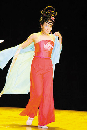 話劇《開心麻花2009·甜咸配》日前在京舉行媒體嘗鮮會(huì)。25歲的前中國(guó)藝術(shù)體操女皇、亞運(yùn)會(huì)兩金得主鐘玲不僅擔(dān)任劇組舞蹈教師,而且在劇中扮演宋朝名妓李師師,有三大段舞蹈和藝術(shù)體操表演。
