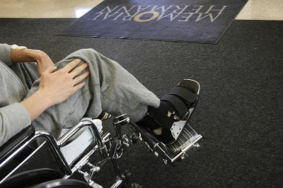 或許是在安靜的醫(yī)院待久了,好動(dòng)的劉翔一出赫曼紀(jì)念醫(yī)院就沖著所有人做起了鬼臉,那個(gè)熟悉的劉翔又回來了。不過劉翔的這次亮相有點(diǎn)不同:“飛人”暫時(shí)棲息在輪椅上,右腳還包裹著厚厚的紗布,外面再加上一個(gè)高至膝蓋下方的護(hù)具。