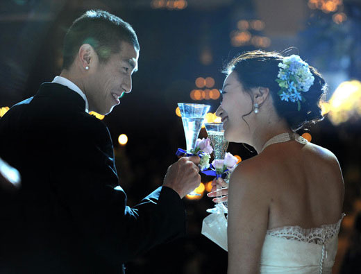 照片=韓聯(lián)社 2002年世界杯上的明星車斗理(左,德乙球隊(duì)TuS)于22日下午在首爾論峴洞皇宮飯店同申慧星(音,右)舉行了婚禮。申慧星是該酒店董事長(zhǎng)申喆昊的長(zhǎng)女。