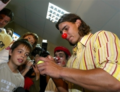 一向熱心公益的納達(dá)爾,很喜歡與孩子們玩樂。四年前,納達(dá)爾就在馬洛卡杜雷塔醫(yī)院扮作小丑安慰受到病痛折磨的孩子們。西班牙RTVE電視臺(tái)稱,這是孩子們令人難忘的經(jīng)歷,“從他們驚訝的面部表情當(dāng)中就可以看出,對(duì)于世界第一的網(wǎng)球選手能親自來給他們講童話,是多么難以置信。”其實(shí),一向喜歡看動(dòng)畫、玩PS2游戲的納達(dá)爾在場(chǎng)外就是個(gè)長(zhǎng)不大的孩子。這個(gè)漫畫《七龍珠》的忠實(shí)擁躉,出外比賽旅行時(shí)也總帶著《七龍珠》的DVD,所以講起童話來也頭頭是道!捌鋵(shí)我不大會(huì)唱歌,相反為孩子們將故事是件不錯(cuò)的工作!奔{達(dá)爾坦言。
