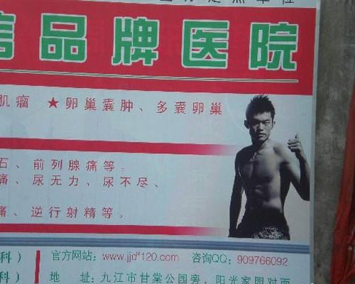 在某醫(yī)院的宣傳巨型海報(bào)中,一身健碩肌肉的林丹和一位不知名的女子分列兩邊,林丹的肖像旁全是宣傳男科疾病和性病治療的。林丹的熱心球迷表示,林丹的這張性感照片是早前為《時(shí)尚健康》雜志拍攝的封面寫(xiě)真,并非為該醫(yī)院專門拍攝的,所以這極有可能又是一則盜用林丹肖像的“山寨廣告”。