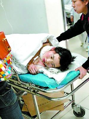 4日,孔雪所在的一組在比賽中發(fā)生了碰撞,她和另外兩名選手相撞后摔倒,另一名選手的冰刀割破了她的頸部右側(cè),當(dāng)時(shí)就流了不少血。孔雪立即被送到附近的青醫(yī)附院治療。據(jù)醫(yī)生介紹,她的傷口有接近無(wú)名指那么長(zhǎng),而且劃得很深,幸好沒(méi)傷到血管。
