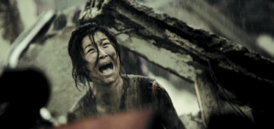 以唐山為題,觀眾自然也關(guān)注地震戲拍得怎么樣,就特技而言應(yīng)該說馮小剛交出了一篇不錯(cuò)的答卷。影片開篇的唐山大地震場面拍得驚心動(dòng)魄,3分鐘內(nèi),觀眾剛體會(huì)到四口之家的溫馨,馬上就見證了地獄般的滅城,地陷、屋塌和震后的哀鴻遍野,這段戲結(jié)合置景搭建和電腦特效,有小細(xì)節(jié)的真實(shí)質(zhì)感,也有大場面的壯觀殘酷,拿出來跟《2012》比都不算失禮。此段戲后,徐帆一句凄厲的“老天爺,你個(gè)王八蛋!”成為觀眾的首個(gè)情緒迸發(fā)點(diǎn),場內(nèi)抽泣聲此起彼伏。