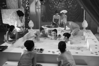 片中,有一場蔡卓妍和眾多宮女在大型浴缸洗澡的場景戲。唯美的場景,加上眾多的美女,令整個畫面看起來相當(dāng)養(yǎng)眼。記者從片方處得知,為了打造這段場景戲,投資方不惜花費(fèi)重金,耗資金百萬打造豪華皇宮,周邊的布景和擺設(shè)也是全部按照皇室宮廷級別設(shè)計。置身于這樣的場景拍洗澡戲,蔡卓妍也表示,“真的享受了皇后的待遇”。