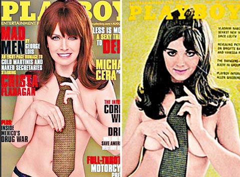 中新網(wǎng)7月19日電 當紅美劇《廣告狂人》(Mad Men)中飾演接線生的女角Crista Flanagan,日前化身《花花公子》雜志的封面女郎,重現(xiàn)60年代兩個經(jīng)典的《花花公子》封面,其中一個造型更以半裸僅打領(lǐng)帶亮相,此造型正是取材自1960年Toni Lacey的11月號封面。