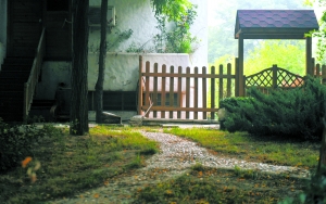 打人男子所在別墅的門牌號為“35號甲”,與郭德綱家同為一套雙拼式別墅。其家后院也用木柵欄圍起了與郭德綱家差不多的后院,并建有木制涼亭。當(dāng)天,記者就其別墅是否圈占綠地一事詢問時,打人男子稱:“關(guān)你們什么事,再問我就打人!辈⒆鰮]拳狀,被旁人攔下。