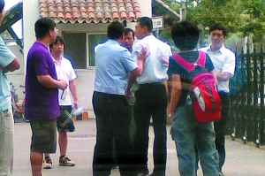 郭家的別墅外仍舊守衛(wèi)森嚴(yán)。記者剛到后院,就被保安帶離。記者離開時(shí),除了柵欄已被拆,后院地上的木條小路依然完好,涼亭也尚未拆除。