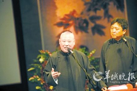 郭德綱在弟子打傷記者事件爆發(fā)后,消失了十多天,本月14日晚終于在北京公開亮相!肮戮V·于謙合作十周年相聲專場”系列演出當(dāng)晚在北京北展劇場舉行,郭德綱率德云社弟子岳云鵬、孔云龍等輪番上場。14日、16日兩場演出,4800個座位全部爆滿。郭德綱接受記者訪問時表示,自己不會退出娛樂圈,德云社也不會關(guān)門。
