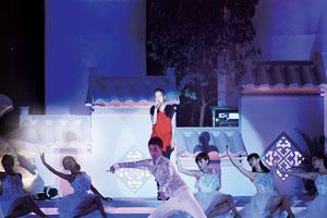 在眾人的歡呼聲中,趙薇開腔演唱了新專輯中的歌曲《江城子》。舞臺上是連綿的徽派建筑布景,在白衣舞者的簇?fù)硐,舞臺上的趙薇仿佛與故鄉(xiāng)的景物融為一體。