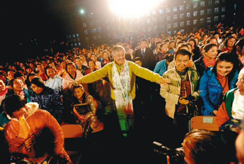 對于不常走入校園的小沈陽來說,看到這么多學(xué)生,尤其是來自青海玉樹災(zāi)區(qū)的藏族學(xué)生,非常興奮。他在現(xiàn)場認(rèn)真地教藏族學(xué)生們唱《我叫小沈陽》,字斟句酌,還真像個老師樣。一名學(xué)生表示:“《我叫小沈陽》這首歌以前曾多次聽過,但從未面對面見過小沈陽,這回算是見到真的了,見到‘活’的啦!”