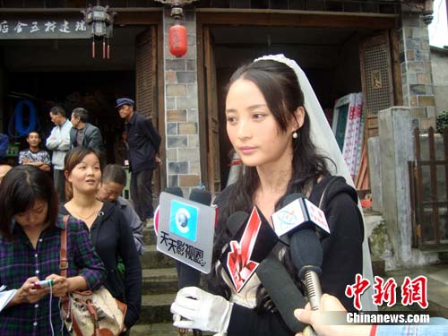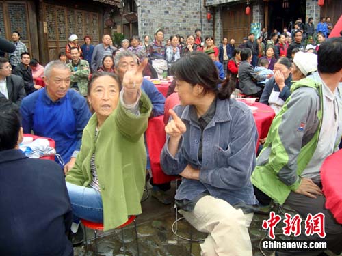 中新網(wǎng)汶川9月28日電(鄢銀嬋)28日中午,四川省汶川縣水磨鎮(zhèn)的萬年臺戲臺廣場上正舉辦一場熱熱鬧鬧的婚禮,這是由著名導(dǎo)演楊亞洲執(zhí)導(dǎo)、倪萍、劉佩琦、蔣勤勤加盟的《大太陽》劇組正在拍攝的一場戲。記者28日趕到水磨拍攝現(xiàn)場探班時,正巧碰到了這喜慶的一幕。