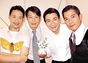 (左起)張學友、黎明、劉德華、郭富城四大天王齊聚真不容易