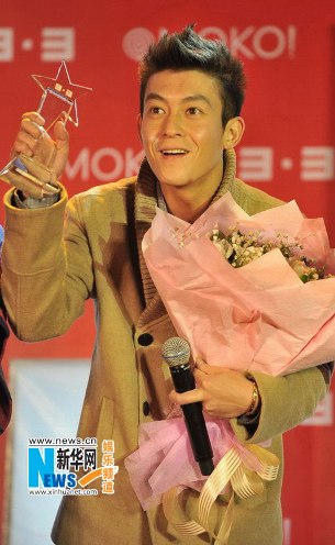 陳冠希10月28日在北京參加商業(yè)活動,他獲贈大捧鮮花人氣依舊居高不下,現場獻唱時他額頭冒青筋,拼命哄歌迷挽救人氣。還不忘大談與女友戀情自我炒作,并稱自己從未說出過退出或者離開娛樂圈。