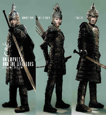 由程小東執(zhí)導(dǎo),甄子丹、陳慧琳、黎明主演的古裝動(dòng)作電影《江山美人》暫定明年3月于內(nèi)地和香港同步公映。今日在美國(guó)洛杉磯全球最大的電影交易市場(chǎng)上,監(jiān)制鐘珍及出品方代表于冬將親自揭曉《江山美人》的五款海報(bào)。可能是因?yàn)槠鹩昧恕饵S金甲》的美術(shù)指導(dǎo)奚仲文,甄子丹、陳慧琳和黎明的盔甲造型與周杰倫的“杰王子”形象很接近,不同的是,《江山美人》中的人物穿的是“紫金盔甲”。