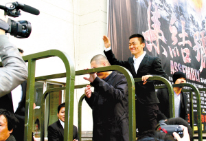 繼在北京舉行了盛大的首映禮之后,《集結(jié)號(hào)》主創(chuàng)一行十多人又馬不停蹄地來(lái)到上海展開宣傳活動(dòng)。19日下午,新聞發(fā)布會(huì)選擇在上海電影集團(tuán)5號(hào)攝影棚進(jìn)行。在馮小剛帶領(lǐng)“谷子地”張涵予、廖凡、王寶強(qiáng)、任泉、袁文康、李乃文等主創(chuàng)入場(chǎng)時(shí),武警戰(zhàn)士還鳴槍歡迎。整個(gè)發(fā)布會(huì)現(xiàn)場(chǎng)也布置成了片中硝煙彌漫的“戰(zhàn)場(chǎng)”,有沙袋、機(jī)槍、戰(zhàn)壕等。發(fā)布會(huì)后男主創(chuàng)們還乘敞篷吉普車和軍用卡車前往首映的電影院。